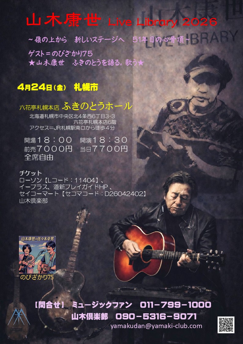 「山木康世 Live Library 2026」 ~~嶺の上から 新しいステージへ 51年目の心骨頂~